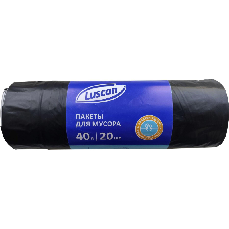 Мешки для мусора на 40 л с завязками Luscan черные (ПВД, 30 мкм, в рулоне 20 штук, 55х70 см) Пакеты для мусора Luscan предназначены для сбора и кратковременного хранения бытового мусора. Пакеты отличаются особой прочностью и удобны в использовании как дома, так и в любых общественных местах. Пакеты оснащены завязками, чтобы их было легко перемещать. Изготовлены из полиэтилена высокого давления (ПВД) плотностью 30 мкм, объем 40 литров. Упакованы по 20 пакетов в рулоне. Цвет: черный. Размер (ШхД): 55х70 см.