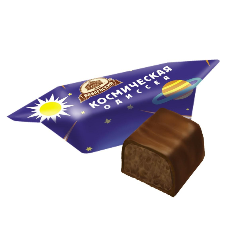 Конфеты 'Космическая одиссея' - одни из самых знаменитых конфет концерна 'Бабаевский'. Плотная начинка из тающего во рту темного шоколадного крема, покрытая шоколадной глазурью. Яркий алкогольный аромат переплетается с насыщенным шоколадным вкусом, в основе которого - нежная мягкая сладость. Конфеты хороши и сами по себе, и в качестве дополнения к кофе и чаю. Состав: шоколадная глазурь (сахар, какао тертое, эквивалент масла какаорафинированные дезодорированные, фракционированные, негидрогенизированные растительные масла (пальмовое, ши)), какао-порошок, эмульгаторы: лецитин соевый, Е476, ароматизатор 'Ваниль'), сахар, какао тертое, масло какао, сгущенное с сахаром молоко (цельное молоко, сахар), сухое цельное молоко, патока, спирт этиловый ректификованный (2,8%), коньяк (1,6%), вода питьевая, эмульгатор лецитин соевый, антиокислитель аскорбиновая кислота, ароматизатор 'Ванильно-сливочный'. Противопоказано при индивидуальной непереносимости белка молока. Пищевая ценность на 100г продукта, г: белки 5,0; жиры 27,0; углеводы 54,0. Энергетическая ценность: 510 ккал. Срок годности: 6 месяцев. Хранить при температуре от 15°С до 21°С и относительной влажности не более 75%. Масса нетто: 5 кг. Страна происхождения: Россия.