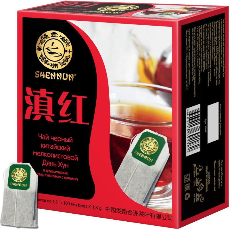 Чай черный мелколистовой "Дянь Хун" ТМ "Shennun" - знаменитый китайский чай, завоевавший весь мир. Название марки "Шень Нун" (Shennun) - имя легендарного "Божественного земледельца", который оставил человечеству в наследство многие исцеляющие рецепты из трав и корней, именно он подарил цивилизации свое величайшее изобретение - чай. Чай выращен на природных плантациях округа Цзиньчжоу, где "Божественный земледелец" впервые открыл замечательные свойства этого напитка. Как гласят легенды, от произнесения одного имени Шень Нун к людям возвращалась сила. Состав: чай черный мелколистовой китайский Дянь Хун. Способ приготовления: положить 1 пакетик в чашку 200 мл, залить кипяченной водой 70°С- 80°С и дать настояться 3-5 минут. Масса нетто: 180 г (100 бумажных двухкамерных фильтр-пакетиков с ярлыком по 1,8 г). Тип упаковки: картонная. Условия хранения: хранить в сухом месте отдельно от остро пахнущих веществ при относительной влажности воздуха не более 70%. Страна происхождения: Китай.