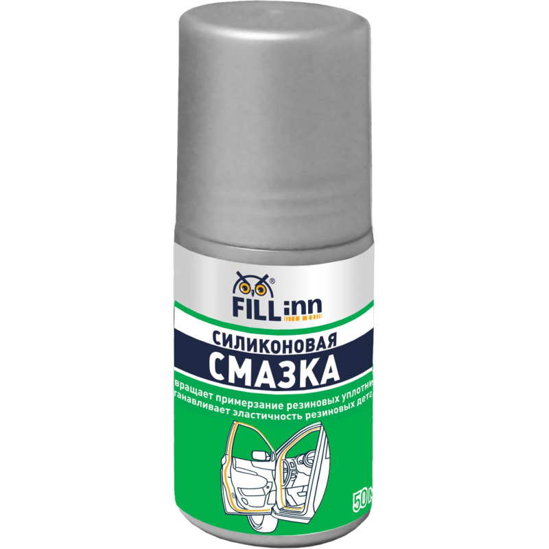 Смазка силиконовая Fill Inn FL024. Обеспечивает уход за пластиковыми, металлическими, резиновыми поверхностями. При отрицательных температурах исключает примерзание и деформацию резиновых уплотнителей дверей, капота и багажника, продлевает их срок службы. Устраняет скрип дверных петель, снижает вероятность заклинивания тросов, приводов, замков. Образует на обрабатываемых поверхностях полимерный слой, обладающий химической инертностью и широким интервалом рабочих температур (от -40град.С до +200град.С). Область применения: Предназначена для защиты резиновых деталей и уплотнителей дверей, багажника и капота автомобиля от естественного старения и воздействия температур. Предотвращает их примерзание и растрескивание. Роликовая форма аппликатора обеспечивает экономичное использование средства. При регулярном применение восстанавливает эластичность и продлевает срок службы резиновых уплотнителей, в том числе пластиковых окон. Преимущества: Предотвращает примерзание резиновых уплотнителей;Восстанавливает эластичность резиновых деталей;Экономичная упаковка.