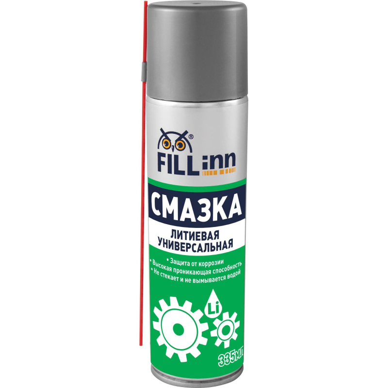 Смазка универсальная Fill Inn FL026. Обеспечивает качественную смазку резьбовых соединений, подшипников качения и скольжения, шарниров, зубчатых, червячных и иных передач, индустриальных механизмов и другой техники. Устраняет неприятный скрип и скрежет дверных петель, снижает вероятность заклинивания тросов, приводов, замков. Область применения: Аэрозольная форма выпуска позволяет смазать механизмы без разборки или демонтажа защитных кожухов. Смазка надежно защищает металлические поверхности от коррозии. Не густеет на морозе, не стекает в жарких погодных условиях, обработанные литиевой смазкой детали и узлы сохраняют работоспособность в диапазоне температур от −40град.С до +120град.С. Обладает отличными водоотталкивающими свойствами. Преимущества: Защита от коррозии;Высокая проникающая способность;Не стекает и не смывается водой.