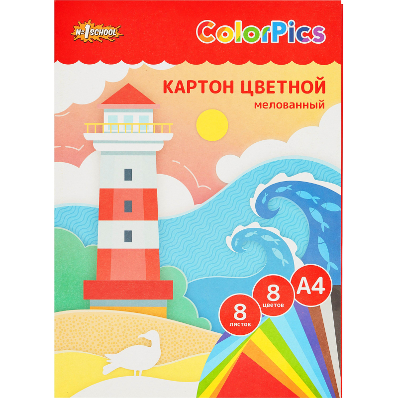 Набор цветного мелованного картона № 1 School ColorPics состоит из 8 листов разного цвета. Экологичен и безопасен для детей. Поставляется в папках с полноцветной печатью. Цвета: зеленый/черный/красный/желтый/оранжевый/коричневый/малиновый/синий. В наборе листы размером 201x282 мм. Плотность 240 г/кв.м.