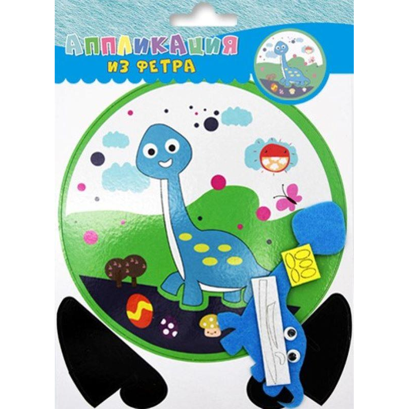 Набор для детского творчества "Аппликация из фетра. Динозаврик" состоит из цветной картонной основы, которая высечена в виде фигурок животных, деталей из самоклеящегося фетра, декоративных глазок, картонной подставки. Размер набора 26 см на 19 см. На картонной основе цветной рисунок, на который слоями необходимо приклеить элементы фетра соответствующей формы и цвета, добавить глазки и приклеить подставку. Детали из фетра высечены по контуру и имеют клеевой слой, поэтому вы обойдетесь без клея и ножниц. В результате получится объемная аппликация. Набор рассчитан на детей от 3-х лет. Занятия с помощью этого набора развивают мелкую моторику, внимание, аккуратность. Все необходимые детали для поделки входят в состав набора.