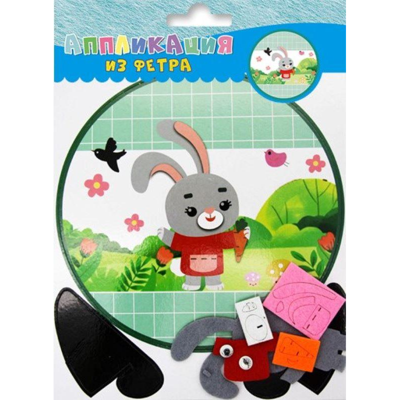 Набор для детского творчества "Аппликация из фетра. Зайчик" состоит из цветной картонной основы, которая высечена в виде фигурок животных, деталей из самоклеящегося фетра, декоративных глазок, картонной подставки. Размер набора 26 см на 19 см. На картонной основе цветной рисунок, на который слоями необходимо приклеить элементы фетра соответствующей формы и цвета, добавить глазки и приклеить подставку. Детали из фетра высечены по контуру и имеют клеевой слой, поэтому вы обойдетесь без клея и ножниц. В результате получится объемная аппликация. Набор рассчитан на детей от 3-х лет. Занятия с помощью этого набора развивают мелкую моторику, внимание, аккуратность. Все необходимые детали для поделки входят в состав набора.
