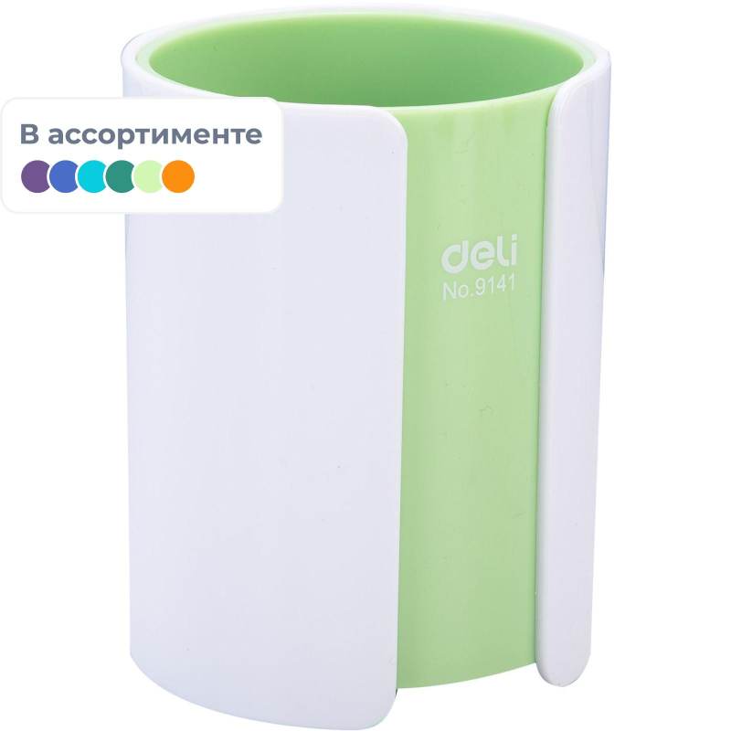 Подставка-стакан для канцелярских мелочей Deli E9141, d82мм, ассорти