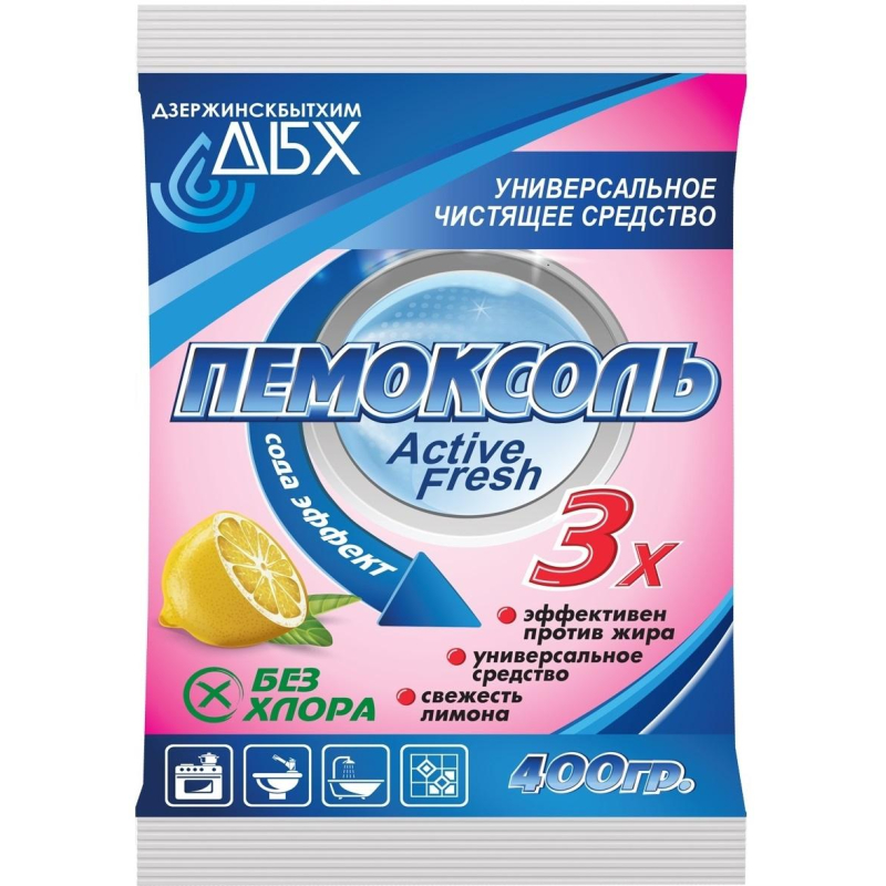 Универсальное чистящее средство ДБХ Пемоксоль Свежесть лимона порошок 400 г (пакет) Назначение. Продукт применяется для чистки ванн, раковин, кухонных плит, а также фаянсовых, эмалированных и керамических поверхностей. Способ применения. Нанести на влажную поверхность, протереть и смыть водой. Меры предосторожности. При попадании продукта на кожу необходимо смыть его водой, при попадании в глаза - промыть обильным количеством воды и обратиться к врачу. Состав. Карбонат кальция (микрокальцит) более 30%, сода кальцинированная менее 5%, сульфат натрия менее 5%, отдушка менее 5%, амфотерный ПАВ менее 5%. Условия хранения. Хранить в сухом месте. Срок годности. 36 месяцев с даты изготовления (см. на упаковке). Относится к сегменту 'суперэконом' - товар с минимальными требованиями к качеству для тех, кто хочет сэкономить. Товар отвечает основным потребительским характеристикам.