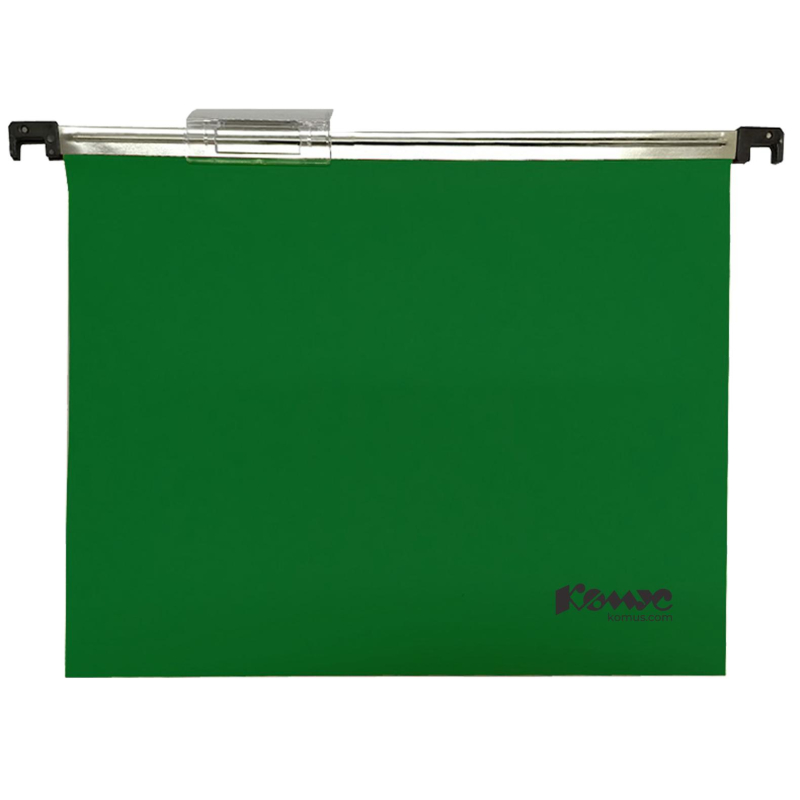 Подвесная папка Комус Plus предназначена для удобного хранения и систематизации документов формата А4. В комплекте 5 подвесных папок V-образной формы с металлическими рейками и пластиковыми крючками, 5 табуляторов с бумажными вставками для маркировки. Подвесная регистратура изготовлена из прочного полипропилена плотностью 300 микрон зеленого цвета. Размер с крючками - 350x250 мм, без крючков - 300x250 мм. Вместимость одной подвесной папки - до 100 листов А4, плотностью 80 гр. Подвесная регистратура размещается в специальной тележке, подставке или боксе.