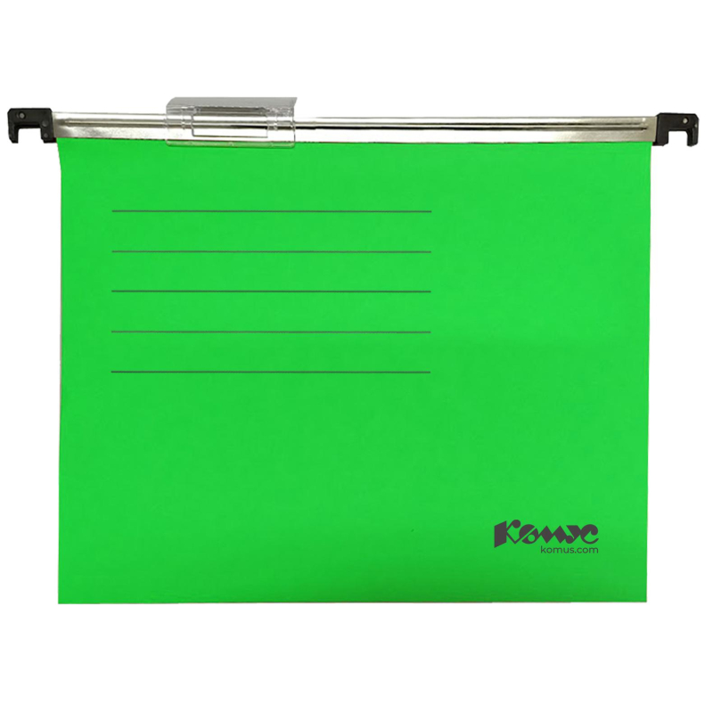 Подвесная папка Комус Plus предназначена для удобного хранения и систематизации документов формата А4. В комплекте 10 подвесных папок V-образной формы с пластиковыми рейками и крючками, 10 табуляторов с бумажными вставками для маркировки. Подвесная регистратура изготовлена из прочного картона плотностью 220 г/кв.м зеленого цвета. Размер с крючками - 350x250 мм, без крючков - 300x250 мм. Вместимость одной подвесной папки - до 100 листов А4, плотностью 80 гр. Подвесная регистратура размещается в специальной тележке, подставке или боксе.