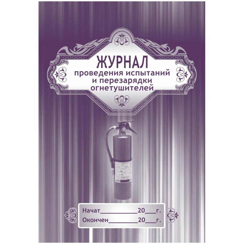 Форма журнала соответствует ГОСТУ Р 59641-2021 'Средства первичные пожаротушения. Руководство по размещению, техническому обслуживанию и ремонту. Методы испытаний на работоспособность'.Графы для заполнения:1. Номер и марка огнетушителя.2. Дата проведения испытания и перезарядки; организация, проводившая техобслуживание.3. Результаты осмотра и испытания на прочность.4. Срок следующего планового испытания.5. Дата проведения перезарядки огнетушителя.6. Марка (концентрация) заряженного ОТВ.7. Результат осмотра после перезарядки.8. Дата следующей плановой перезарядки.9. Должность, фамилия, инициалы и подпись ответственного лица.Журнал формата А4 (197х285 мм), 32 листа. Обложка из мелованного картона 220 г/кв. м, покрыта офсетным лаком. Внутренний блок из писчей бумаги 60 г/кв.м. Переплет мягкий, на скрепке.