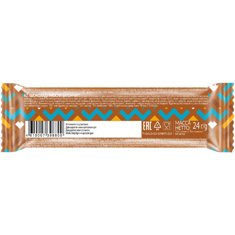 Батончик-мюсли Matti Шоколад - злаковый батончик с добавлением воздушных шариков пшеницы и шоколада. Хрустящий батончик зарядит энергией злаков и наполнит день ярким вкусом. Состав: смесь злаковая (зернышки рисовые (мука (крупа) рисовая, мука пшеничная, сахар, соль), хлопья кукурузные дробленые (крупа кукурузная, сахар, соль), пшеница воздушная с какао зернышки (мука пшеничная, мука рисовая, сахар, какао - порошок, соль), хлопья овсяные); сироп глюкозно - фруктозный; глазурь кондитерская (сахар, заменитель какао-масла нетемперируемый лауринового типа (фракция гидрогенизированного пальмоядрового масла, эмульгаторы (лецитин соевый, сорбитан тристеарат)), какао-порошок, сухая молочная сыворотка, эмульгаторы (лецитин соевый, Е476), ароматизатор 'Ванилин'); масло растительное кокосовое; какао - порошок; патока крахмальная карамельная; эмульгатор - лецитин соевый; ароматизатор. Может содержать следы арахиса, орехов. Пищевая ценность: белки 5 г; жиры 11 г; углеводы 68 г. Энергетическая ценность: 390 ккал. Срок годности: 13 месяцев. Условия хранения: хранить в сухом месте при температуре не выше 25°С и относительной влажности воздуха не более 75%. Вес: 144 г (6 батончиков по 24 г). Страна производства: Россия.