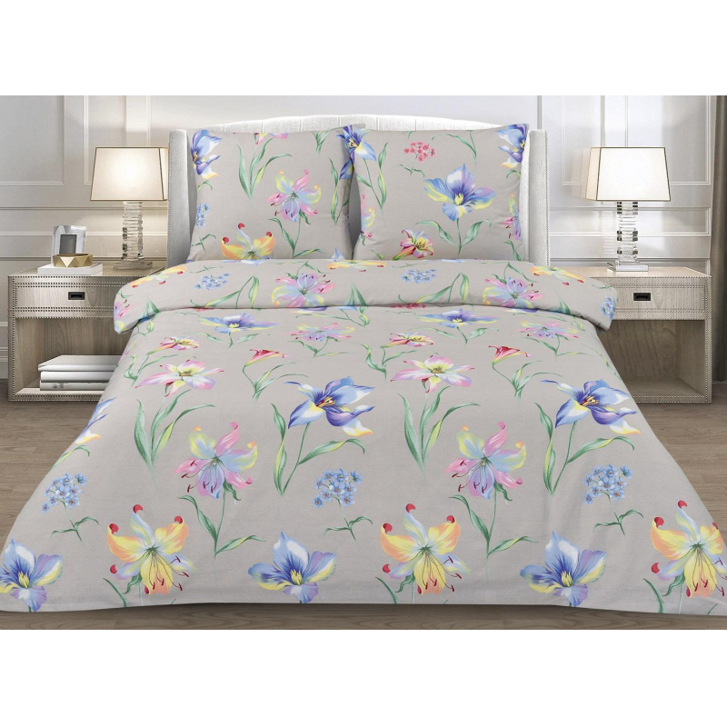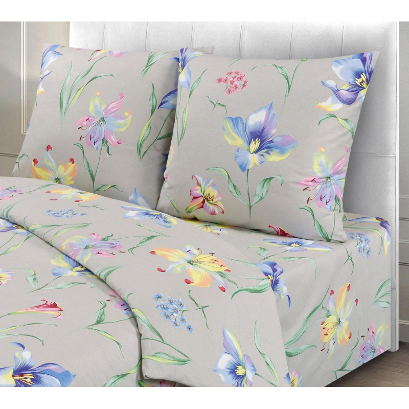 Постельное белье Lovely Textile Лилии (евро, бязь). В комплект постельного белья входит: - простынь 240x215 см; - пододеяльник 200x215 см; - 2 наволочки 50x70 см. Комплект постельного белья из бязи очень прочное и долговечное. Бязь выдерживает многократные стирки, не мнется, приятная к телу и гипоалергенна. Комплект упакован в картонный полукороб в ПВХ пакете.