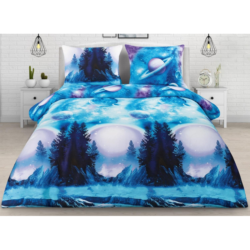 Постельное белье Lovely Textile Вселенная (1.5-спальное, бязь). В комплект постельного белья входит: - простынь 150x215 см; - пододеяльник 145x215 см; - 2 наволочки 50x70 см. Комплект постельного белья из бязи очень прочное и долговечное. Бязь выдерживает многократные стирки, не мнется, приятная к телу и гипоалергенна. Комплект упакован в картонный полукороб в ПВХ пакете.