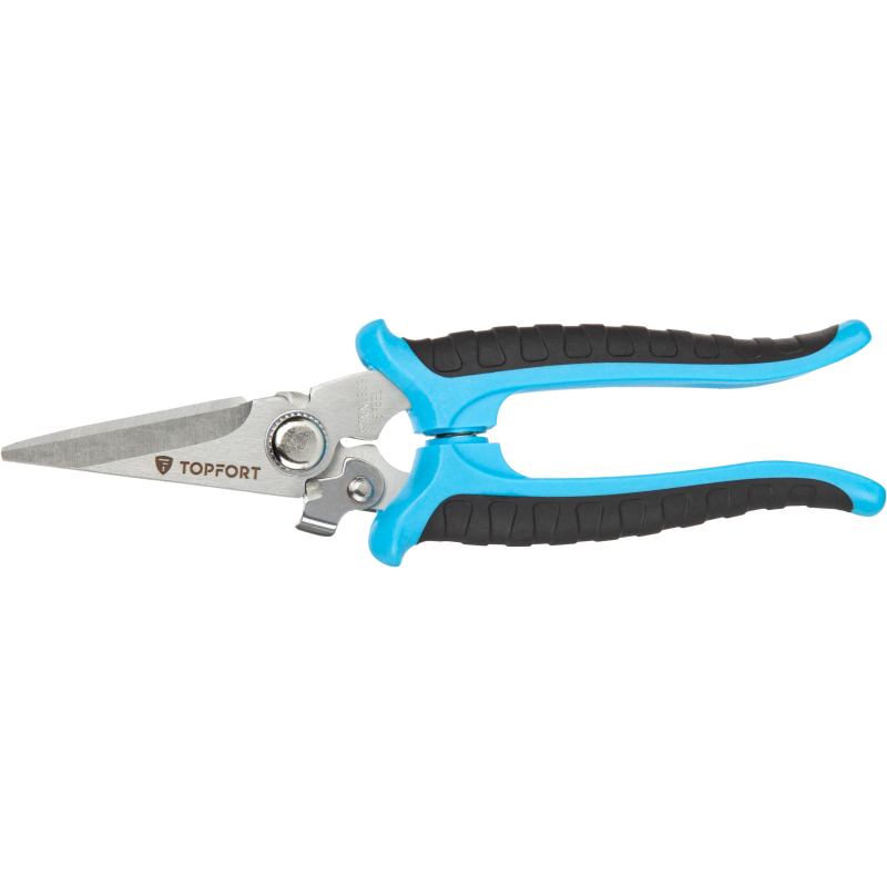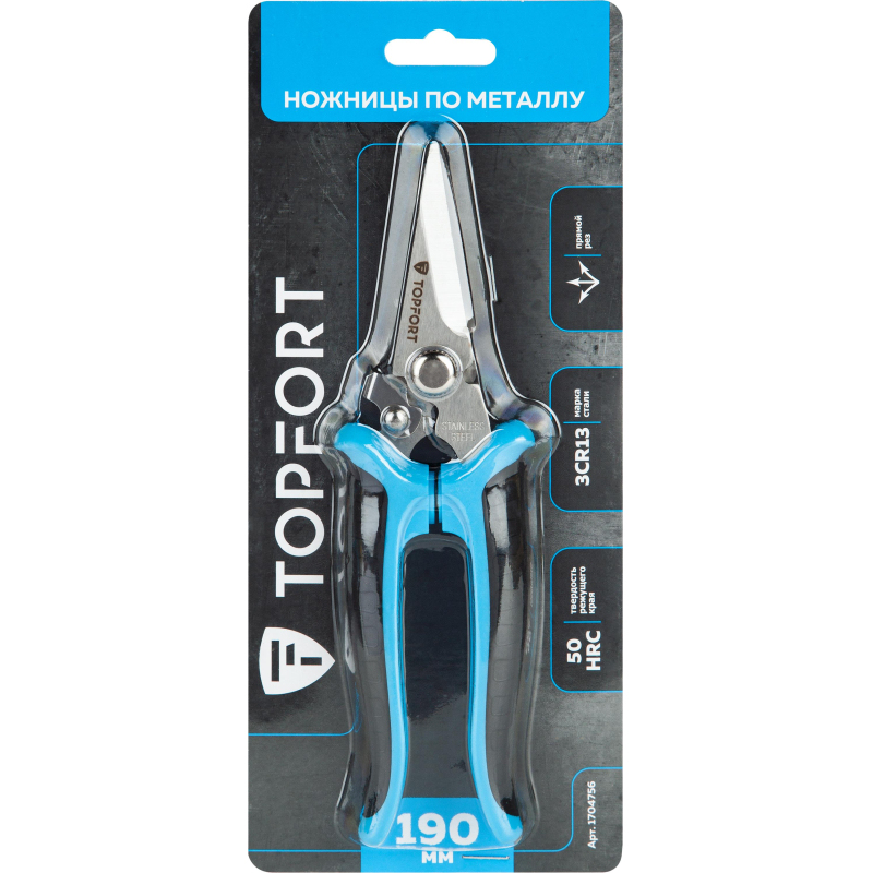 Ножницы по металлу Topfort с прямым резом. Преимущества изделия: - Материал губок - нержавеющая сталь - Двухкомпонентные рукоятки не скользят в руке, обеспечивая надежный хват - Удобная форма рукояток позволяет придать руке оптимальное положение, что снижает усталость и травматизм при длительной работе Характеристики изделия: - Длина ножниц - 200 мм - Толщина металла - 4 мм - Твердость режущего края 50HRC Внешний вид и/или характеристики товара могут быть изменены производителем в соответствии с производственным процессом.