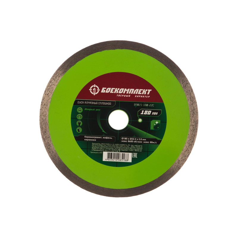 Диск алмазный по керамограниту/кафелю/керамике Боекомплект сплошной 180x2 мм (B9021-180-22C) Внешний вид и/или характеристики товара могут быть изменены производителем в соответствии с производственным процессом.