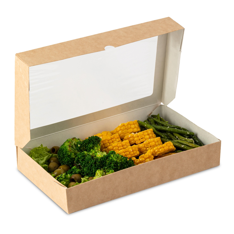 Контейнер OSQgroup Tabox 1000 для второго 1000 мл коричневый (197х120х40 мм, 200 штук в упаковке). Картонная упаковка для горячих и холодных блюд OSQgroup Tabox. Отличное решение для доставки кафе и ресторанов, кейтеринга, takeaway-предприятий. Полностью влаго- и жироустойчивая, подходит для разогрева в СВЧ-печи. Поставляется в плоском виде, экономит место при транспортировке и хранении. Гарантирует сохранность содержимого за счет надежных замков. Прочная конструкция из жесткого картона с большим презентационным окном. Собирается в 3 движения. Размер: 197х120х40 мм. Объем: 1000 мл.