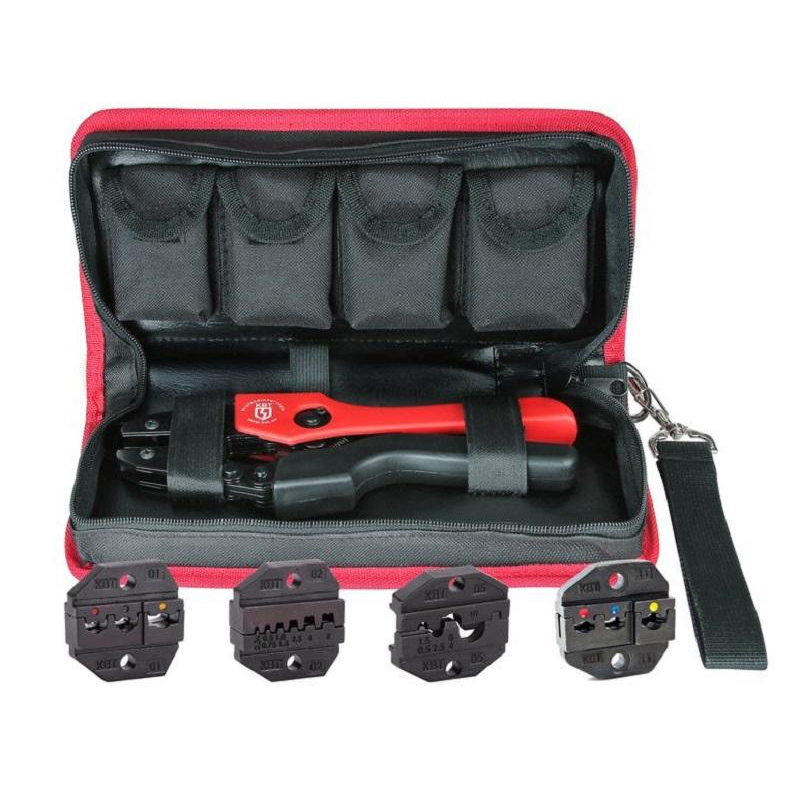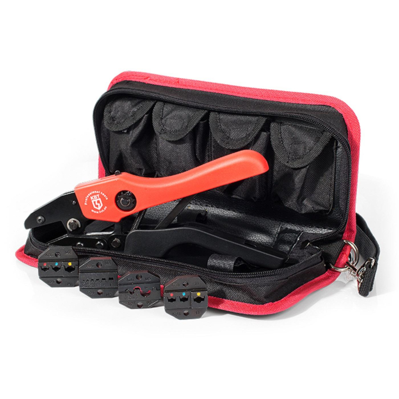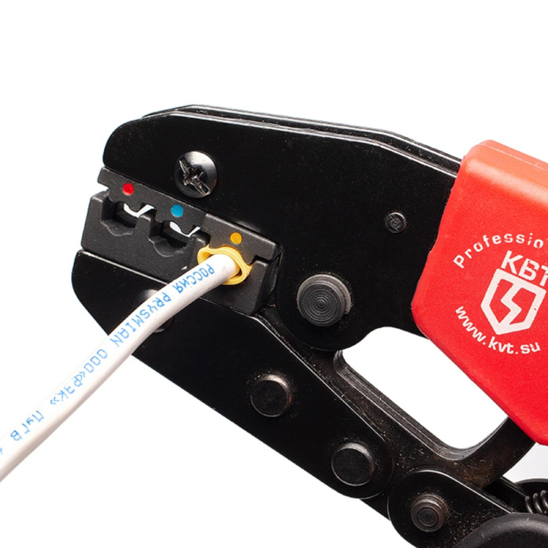 Пресс-клещи КВТ СТК+4. Сумка имеет 4 кармана с возможностью размещения 8 матриц плюс одна матрица в инструменте. Совместимость: все матрицы серии МПК (КВТ). Усиленная конструкция 9-дюймовых пресс-клещей. Храповой механизм, обеспечивающий блокировку обратного хода до завершения полного цикла опрессовки. Устройство разблокировки храпового механизма. Регулятор прижимного усилия матриц. Удобные эргономичные рукоятки. Прочная сумка с двумя карманами на лицевой стороне, кистевым ремнем и лямкой для крепления на пояс. Материал сумки: полиэстер 1680D Оксфорд. В комплекте: Пресс-клещи СТК; Матрица МПК-01 для изолированных наконечников; Матрица МПК-11 для изолированных разъемов; Матрица МПК-02 для втулочных наконечников; Матрица МПК-05 для неизолированных наконечников; Сумка для инструмента с отделениями под матрицы.Внешний вид и/или характеристики товара могут быть изменены производителем в соответствии с производственным процессом.