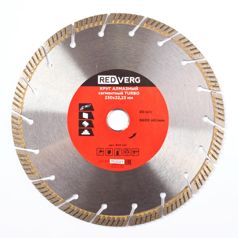 Диск алмазный REDVERG сегментный TURBO d230х22.2мм,по бетону/камню (900241)