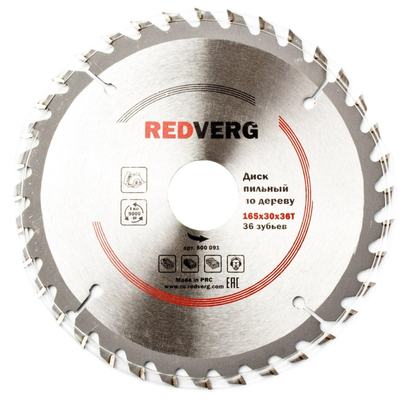 Диск пильный по дереву RedVerg твердосплавный 165х30/20 мм, 36 зубьев (800091).