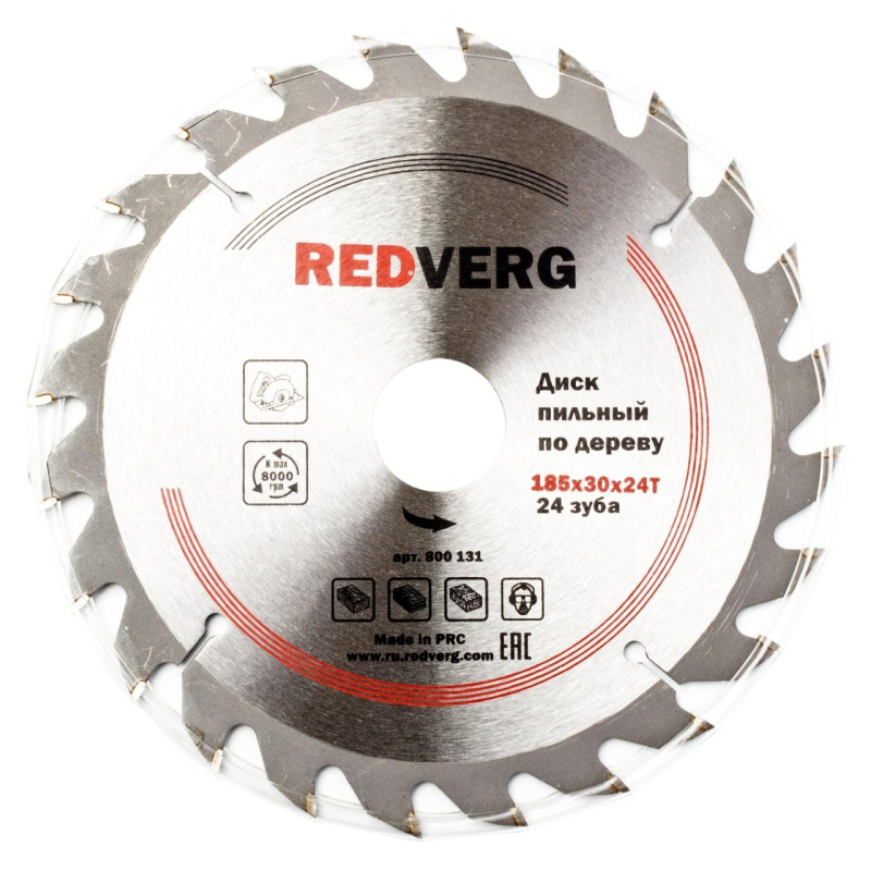 Диск пильный по дереву REDVERG, d185х30/20/16мм, 24зуб (800131)
