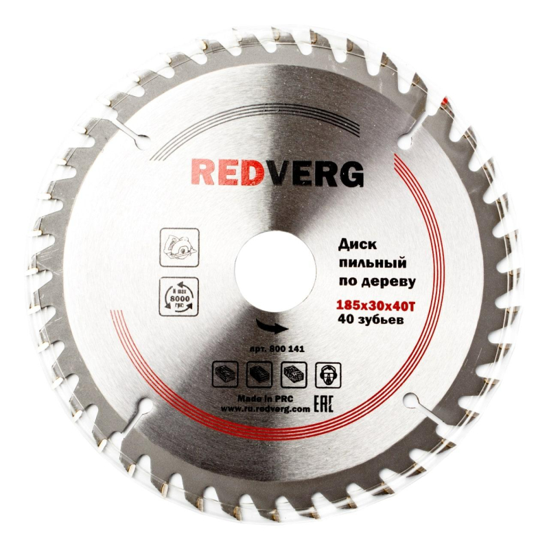 Диск пильный по дереву REDVERG, d185х30/20/16мм, 40зуб (800141)