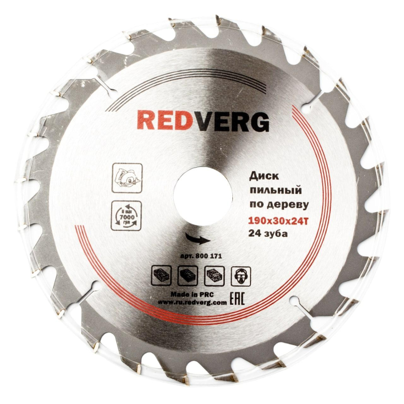 Диск пильный по дереву RedVerg твердосплавный 190х30/20 мм, 24 зуба  (800171).