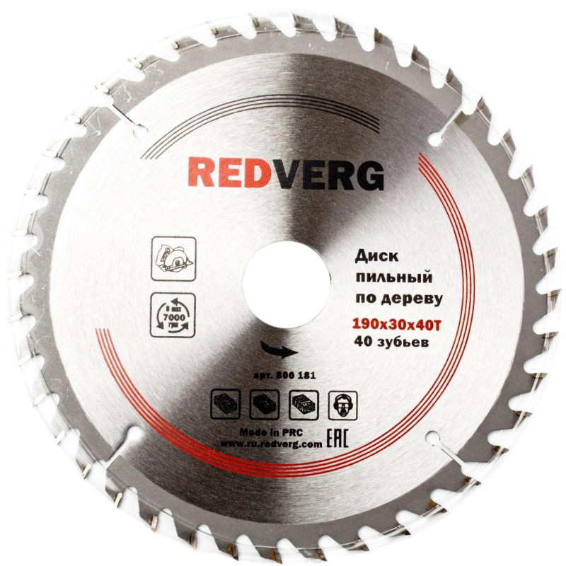 Диск пильный по дереву REDVERG, d190х30/20мм, 40зуб (800181)