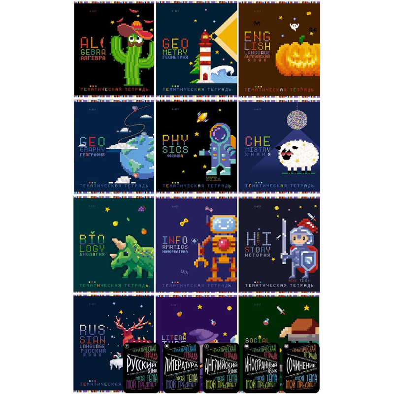 Набор Тетрадей предметных А5 40л,12шт,Пиксели,+5наклеек,С9189-К