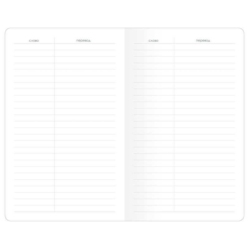 Блокнот для записи иностранных слов Be Smart из коллекции "Soul" зауженного формата 130х210 мм на скрепке прекрасно уместится в рюкзак или сумку, чтобы в нужный момент можно было быстро повторить выученные слова и их перевод. Обложка из мягкого, но прочного картона с микротекстурированием и печатью цветного принта с внутренней стороны имеет приятную ламинацию, которая делает изделие прочнее и долговечнее. А скругленные уголки позволят мягкой обложке сохранить первозданный вид. Внутренний блок со специальной линовкой в два столбца для записи слов и их перевода со скругленными уголками на 48 листов (96 страниц) из высококачественной белой бумаги плотностью 65 г/кв.м.