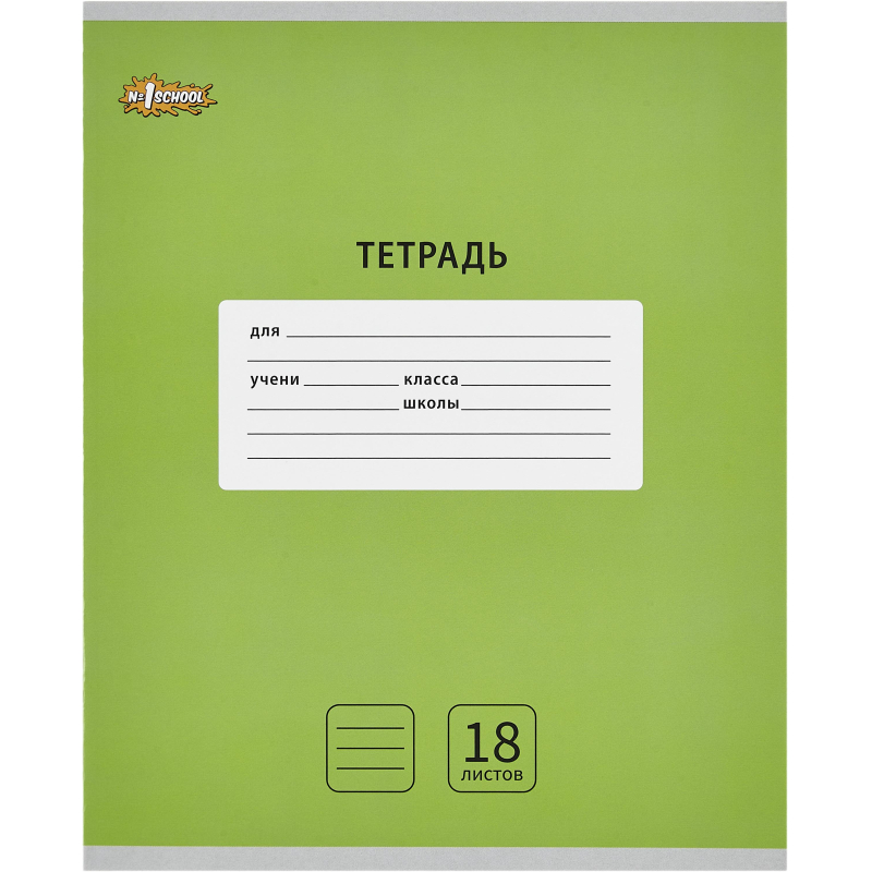 Тетрадь №1 School формата А5, 18 листов. Обложка зеленого цвета: мелованный картон. Внутренний блок: офсет, плотность 60 гр., линейка, красные поля. Скрепление: скрепка. Тетрадь подойдет для занятий любому школьнику, используется для письма шариковыми, гелевыми и капиллярными ручками. Скругленные уголки помогут надолго сохранить привлекательный внешний вид тетради.Тетради отпечатаны на современном высокотехнологичном оборудовании и соответствуют стандартам качества. Количество в упаковке: 10 шт.