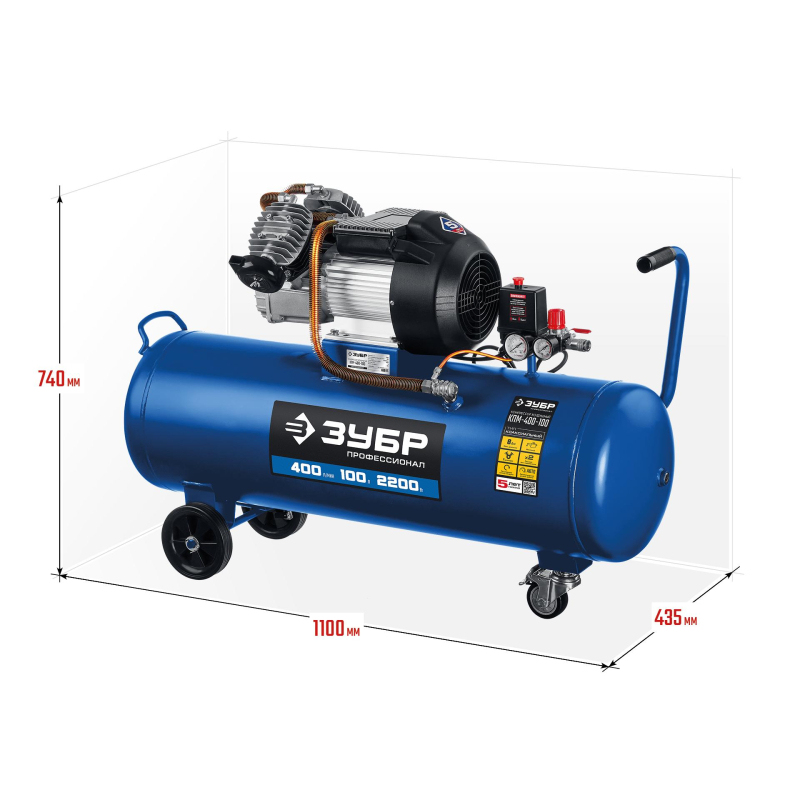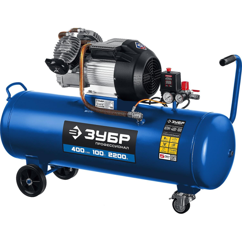 Компрессор поршневой Зубр Профессионал КПМ-400-100. Грамотное сочетание новых технологий и проверенных временем конструкционных решений, которое найдет свое применение в мастерской, на производстве и в строительстве. Серия 'Профессионал' отличается увеличенным ресурсомвозможность подключения двух инструментов, раздельно регулировать расход воздуха через каждый и автоматический режим работы изделия. Высокая производительность, возможность подключения двух инструментов, раздельная регулировка расхода воздуха через каждый позволяет подключать большой ассортимент пневмоинструмента. При правильной эксплуатации в соответствии с рекомендациями производителя ресурс данных компрессоров составит не менее 4000 часовx. x на основании результатов испытаний лаборатории компании АО 'Зубр ОВК'.