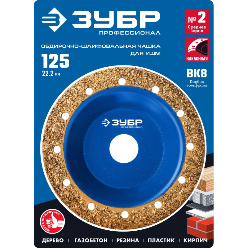 Чашка шлифовальная Зубр. Обдирочно-шлифовальные чашки Зубр Профессионал изготовлены из износостойкого зерна твердосплава ВК8 скрепленного сверхпрочной пайкой с корпусом чашки благодаря чему обладают уникальным сверхвысоким ресурсом.