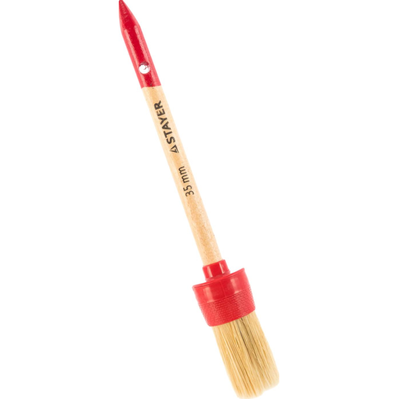 Кисть круглая малярная Stayer Master, предназначена для работ со всеми видами лакокрасочных материалов, в первую очередь с масляными красками и эмалями. Светлая натуральная щетина. Деревянная ручка с отверстием для подвески. Пластмассовый бандаж.  Внешний вид и/или характеристики товара могут быть изменены производителем в соответствии с производственным процессом.