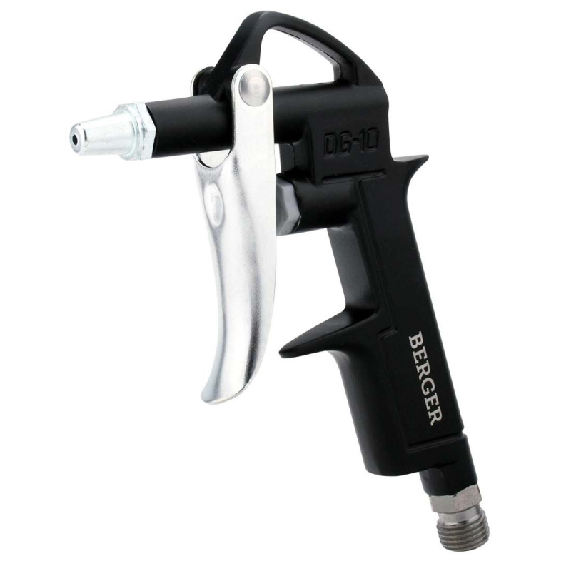 Пистолет продувочный пневматический Berger Винд - специализированный продувочный пистолет с тремя насадками различной длины, надежный и комфортный в работе, простой и нетребовательный в обслуживании. Предназначен для обдува и прочистки сжатым воздухом труднодоступных загрязненных мест. Отличается увеличенным сроком службы, высокой точностью изготовления и выверенной эргономикой. Особенности: - Высокопрочный корпус из алюминиевого сплава; - Рекомендуемое рабочее давление: 8-10 бар; - Расход воздуха: 150-200 л/мин; - Входное соединение: внешняя резьба 1/4"; - Три насадки в комплекте длиной: 16.5, 64.5 и 112 мм; - Переходник на ЕВРО-быстросъем M1/4" в комплекте; - Быстрое подключение к пневматическому шлангу. Комплектация: - Пневматический пистолет; - Адаптер-соединитель с резьбы F1/4" на быстросъем M1/4"; - Три насадки: 16.5, 64.5, 112 мм.