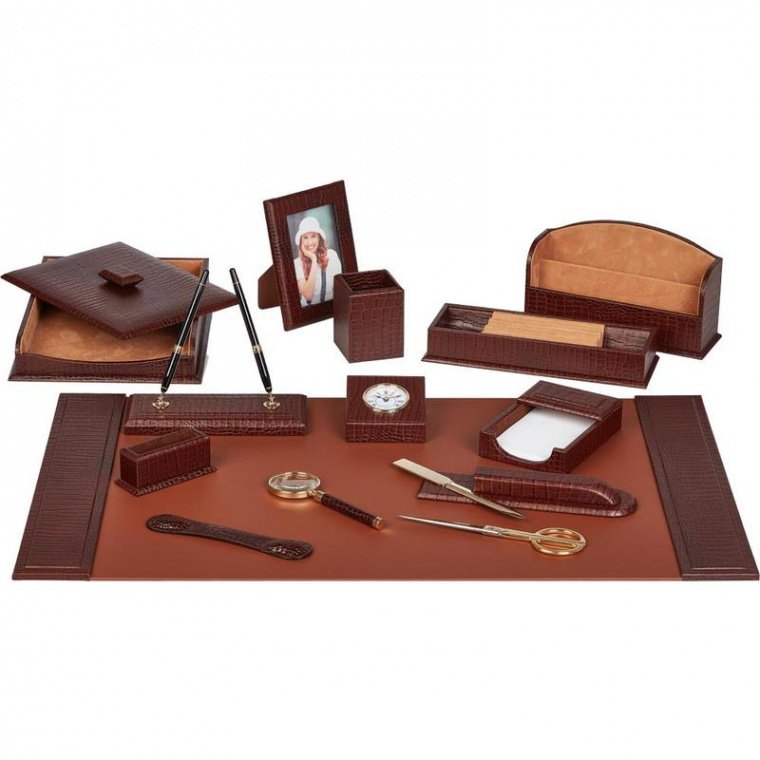 Набор выполнен из натуральной кожи с текстурной крокодиловой отделкой. Комплектация (13 предметов):