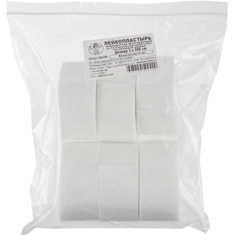 Перевяз. ср-ва Лейкопластырь 3х500см нетканый в зип-пакете,6 шт/упак, Лейко
