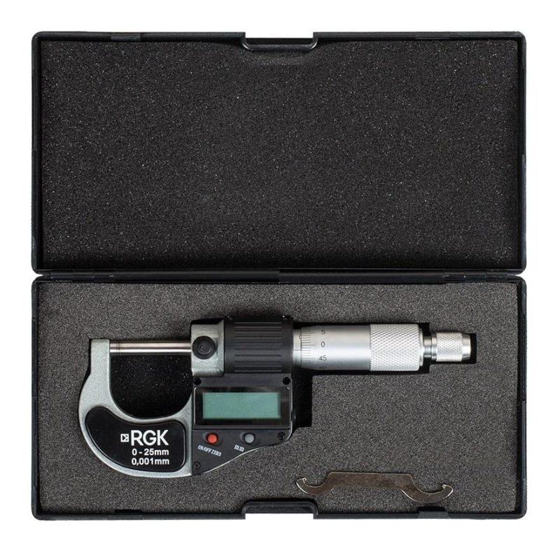Микрометр RGK MC-25 электронный 25 мм 0.001 мм (779562)Электронный микрометр Rgk MC-25 - высокоточный инструмент для измерения линейных параметров различных деталей и заготовок в диапазоне от 0 до 25 мм с разрешением 0.001 мм и допусками, которые не могут обеспечить другие устройства, например, штангенциркули. Электронная модификация микрометра гораздо удобнее в работе, если сравнивать ее с механическим аналогом. Результаты отображаются на дисплее крупным шрифтом, их можно сразу считать и использовать, вместо того, чтобы всматриваться в тонкие риски шкалы обычного прибора и интерпретировать показания. Цифровой микрометр Rgk MC-25 широко применяется при металлообработке, дефектовке, во время экспертиз и мероприятий производственного контроля, калибровке оборудования. Качество сборки инструмента гарантирует точные, стабильные и воспроизводимые результаты. Современное устройство позволяет переключаться между единицами измерения прямо по ходу работы, что особенно актуально для тех специалистов, которым приходится сверяться с иностранной документацией, составленной в имперской системе мер. Функция обнуления дисплея дает возможность проводить замеры относительный способом - удобное решение для серийного контроля качества и точной подгонки деталей. Прибор также можно подключить к ПК или ноутбуку для прямого экспорта данных, при этом требуется соответствующий адаптер. Электронный микрометр Rgk MC-25 оборудован стопорным зажимом, который упрощает снятие показаний и составление документации. Барабан и трещотка, используемая для создания оптимального контакта с объектом измерения, снабжены рельефной насечкой, за счет которой этими органами управления удобно пользоваться. В набор входит регулировочный ключ для настройки и выставления нуля. Для хранения и безопасной транспортировки комплекта предусмотрен прочный защитный футляр с ложементом, надежно удерживающим инструмент.Внешний вид и/или характеристики товара могут быть изменены производителем в соответствии с производственным процессом.
