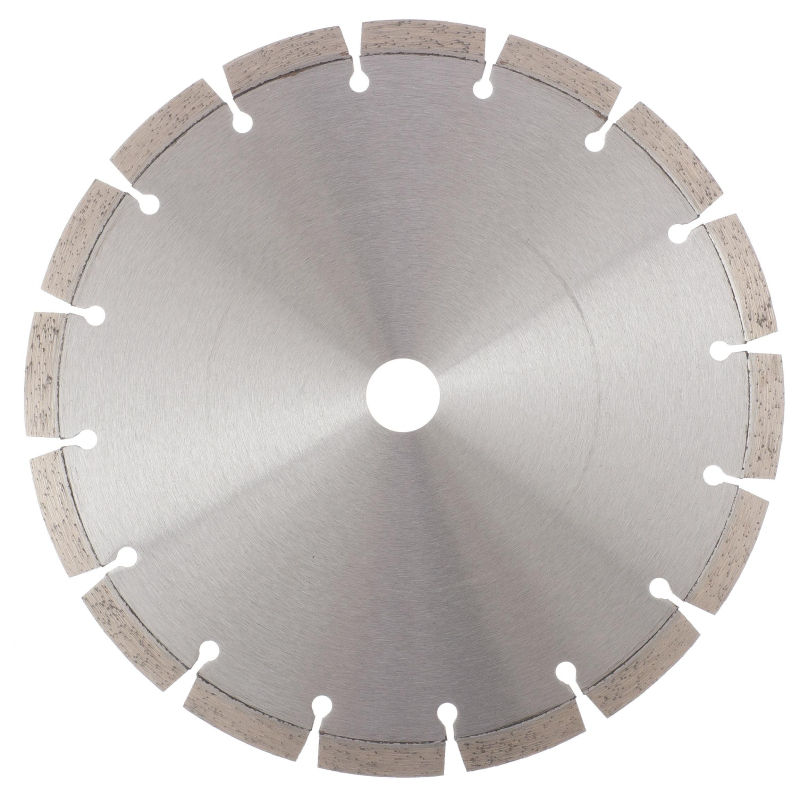 Алмазный диск Gross ф230x22,2 мм 73008 с лазерной приваркой сегментов предназначен для сухого резания бетона, в том числе свежего, кирпича, песчаника и гранита. Посадочный диаметр 22,2 мм позволяет использовать диск в качестве расходного инструмента для УШМ. Сегменты обеспечивают быстрое сухое резание без необходимости водяного охлаждения. За счет оптимально подобранной связки диск выдерживает перегрузки и подходит как для интенсивного бытового, так и для профессионального применения, когда требуется выполнить большой объем работ. Преимущества: Сегментная форма - 16 прорезей в режущем слое способствуют небольшому изменению размера секторов диска в процессе сухого резания, что позволяет защитить его от деформации. Лазерная приварка сегментов - режущий алмазный слой прочно зафиксирован на корпусе, такая технология изготовления гарантирует надежность диска и высокую стойкость к нагрузкам. Ширина алмазного слоя 10 мм - диск гарантирует высокую производительность выполняемых работ. Высокая концентрация алмазов - режущая часть обеспечивает эффективность и большую скорость реза, т. к. изготовлена из качественных крупных зерен размером 40-50 мкм. Корпус из стали 65Mn - диск хорошо пружинит и сохраняет плоскостность в процессе реза, что увеличивает срок службы инструмента. Превосходное качество - диск изготовлен на высококлассном корейском оборудовании. Высокий рабочий ресурс - серебро, кобальт и другие дорогостоящие компоненты в составе металлической связки надежно удерживают алмазные зерна и обеспечивают равномерный износ и своевременное вскрытие на кромке новых алмазов. Защитно-декоративное покрытие - бесцветный лак повышает коррозионную стойкость инструмента. Внешний вид и/или характеристики товара могут быть изменены производителем в соответствии с производственным процессом.