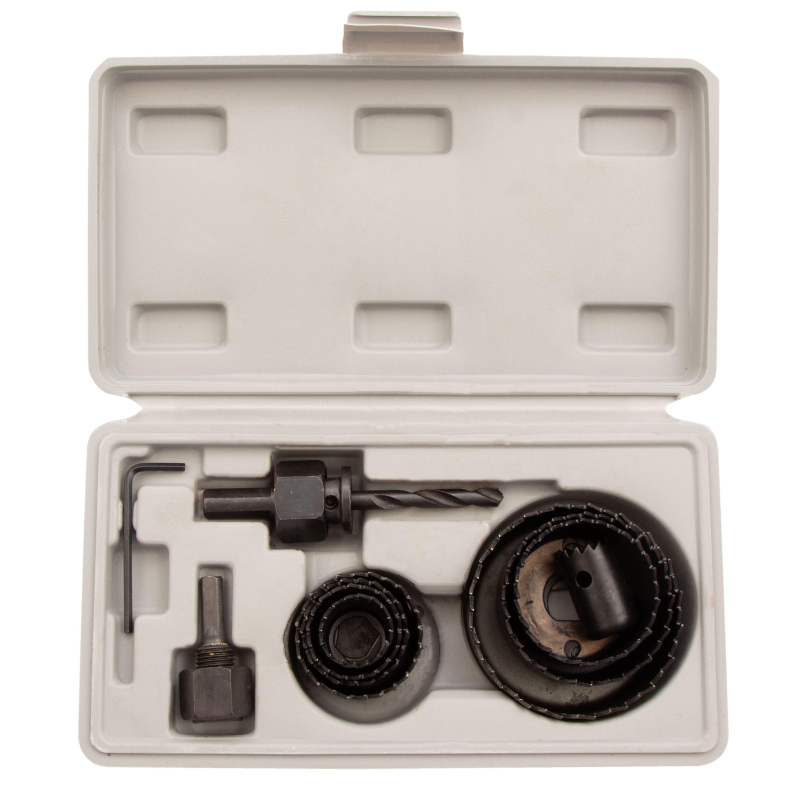 Набор кольцевых пил по дереву Matrix 70473 состоит из 11 предметов и предназначен для вырезания круглых отверстий диаметром 19-64 мм и глубиной до 27 мм. Входящие в комплект коронки подходят для работы по дереву, фанере, пластику, ламинату, гипсокартону, ДСП. С их помощью можно подготовить поверхность к установке розеток, светильников, выключателей, а также прокладке труб. Коронки устанавливают на электродрели. Для защиты пилы от проворачивания в комплекте предусмотрена специальная проставка. Набор пригодится во время ремонта и будет полезен в быту. Преимущества: Кольцевые пилы обладают высоким ресурсом, поскольку изготовлены из прочной углеродистой стали, устойчивой к повреждениям и износу. Режущие кромки долго сохраняют остроту, т.к. имеют твердость 40 HRC. Коронки характеризуются высокой производительностью благодаря разведенным зубьям, обеспечивающим эффективное удаление стружки. Пилы удобно центрировать во время сверления, поскольку они комплектуются направляющим сверлом. Сверло надежно фиксируется шестигранным ключом 2,5 мм, входящим в комплект. Набор удобно хранить и транспортировать, поскольку он упакован в пластиковый кейс с ложементами.