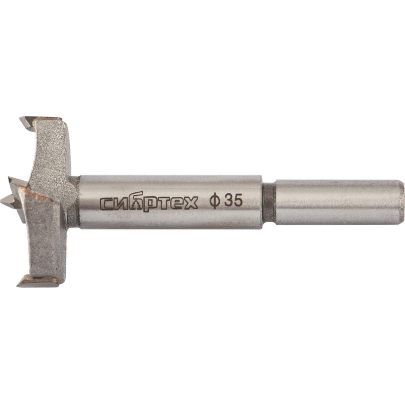 Сверло Форстнера по дереву Сибртех 704835 с цилиндрическим хвостовиком, используется для получения глухих отверстий диаметром 35 мм в древесине, ДСП, ДВП и других материалах. Благодаря продуманной конструкции инструмента стенки и дно отверстий получаются ровными и гладкими. Сверло применяют для производства мебели, а также отделочных работ. Преимущества: Сверло изготовлено из стали 45, поэтому устойчиво к механическим нагрузкам. Благодаря твердосплавным пластинам из сплава ВК8 твердостью 86-92 HRC инструмент характеризуется высокой производительностью и продолжительным ресурсом работоспособности. Центрирующее острие удерживает сверло на заданной оси, что облегчает засверливание и позволяет получить ровное отверстие.