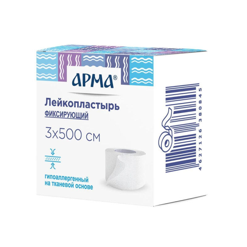 Перевяз. ср-ва Лейкопластырь 3х500см тканевый белый в картоне, АРМА