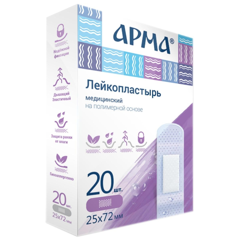 Перевяз. ср-ва Лейкопластырь,25х72мм полимер. прозрачный,20шт/уп,АРМА