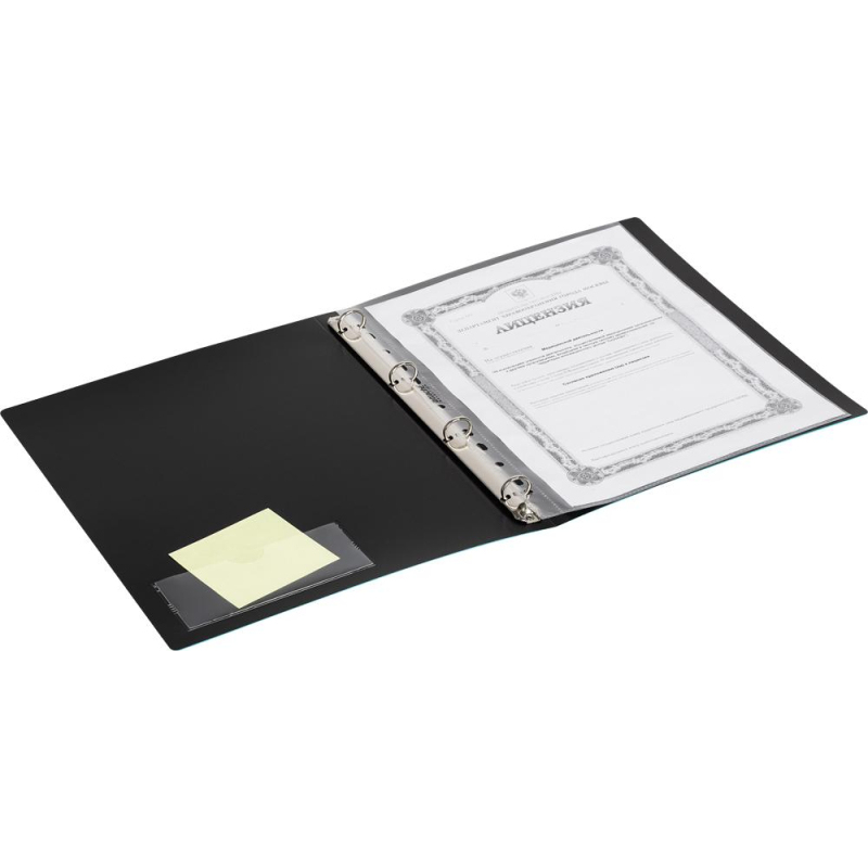 Папка на кольцах рекомендуются как для временного, так и длительного хранения, систематизации, архивирования документов. Такие папки используются в работе офисными сотрудниками различных специальностей, направлений, должностей. Можно использовать для хранения документов дома.Стильная папка на четырех кольцах Комус изготовлена из высококачественного полипропилена толщиной 1 мм. Диаметр кольца - 17 мм. Двухцветный эффект: внешняя поверхность голубая, внутренняя - черная. Формат А4. Отличается устойчивостью при вертикальном размещении. Внутри есть карман для компакт-дисков и визитных карточек. Ширина корешка составляет 25 мм. Папка на кольцах вмещает до 100 листов стандартной плотности.
