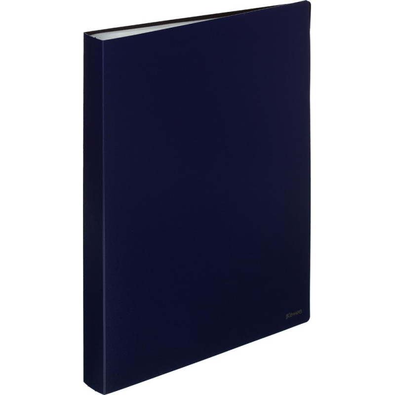 Папка с файлами Комус формата А4 изготовлена из полипропилена толщиной 0,8 мм двух цветов: темно-синего (внешняя поверхность) и черного (внутренняя поверхность). Имеет 40 несъемных прозрачных вкладышей для удобного хранения и демонстрации документов. В каждом из них можно разместить по два листа. Ширина корешка составляет 20 мм. Файловая папка дополнительно оснащена внутренним карманом для компакт-дисков и визитных карточек. Плотность файлов 30 мкм.