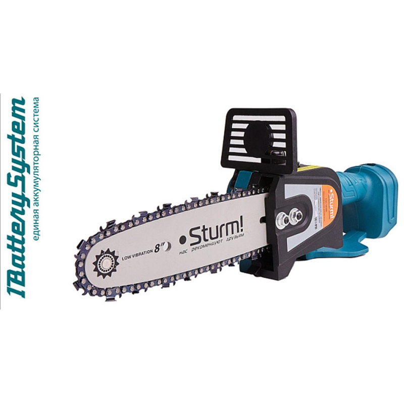 Пила цепная аккумуляторная Sturm CSC1808BL прекрасно справится с обрезкой веток деревьев и простыми столярными работами. Насос принудительной подкачки топлива позволит шине и цепи прослужить дольше. Бесщеточный двигатель уменьшает вес и габариты инструмента, увеличивает мощность, продолжительность работы и ресурс. Благодаря небольшому весу работу можно выполнять одной рукой. Аккумуляторная цепная пила является частью системы 1BatterySystem. 1BatterySystem - универсальная аккумуляторная система. Подходит ко всей линейке аккумуляторного инструмента Sturm Аккумуляторная цепная пила, в целях экономии, поставляется без аккумулятора и зарядного устройства. Вы можете использовать один аккумулятор данной системы для нескольких инструментов или использовать аккумулятор от шуруповерта с логотипом 1BatterySystem. Компания Sturm гарантирует наличие в розничной сети аккумуляторов для данной аккумуляторной системы в течение, как минимум, 15 лет.Внешний вид и/или характеристики товара могут быть изменены производителем в соответствии с производственным процессом.