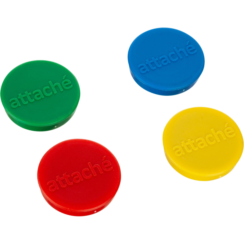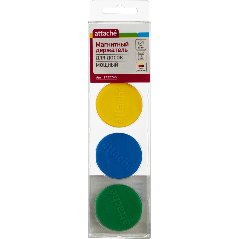 Магнитный держатель мощный Attache для досок, диаметром 40 мм, в количестве 4 штук в упаковке, ассорти. Надежно удерживаются на любой железной или стальной поверхности.