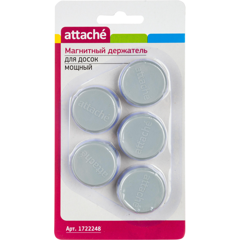 Магнитный держатель мощный Attache для досок, диаметром 30 мм, в количестве 5 штук в упаковке, цвет изделия серый. Надежно удерживаются на любой железной или стальной поверхности.