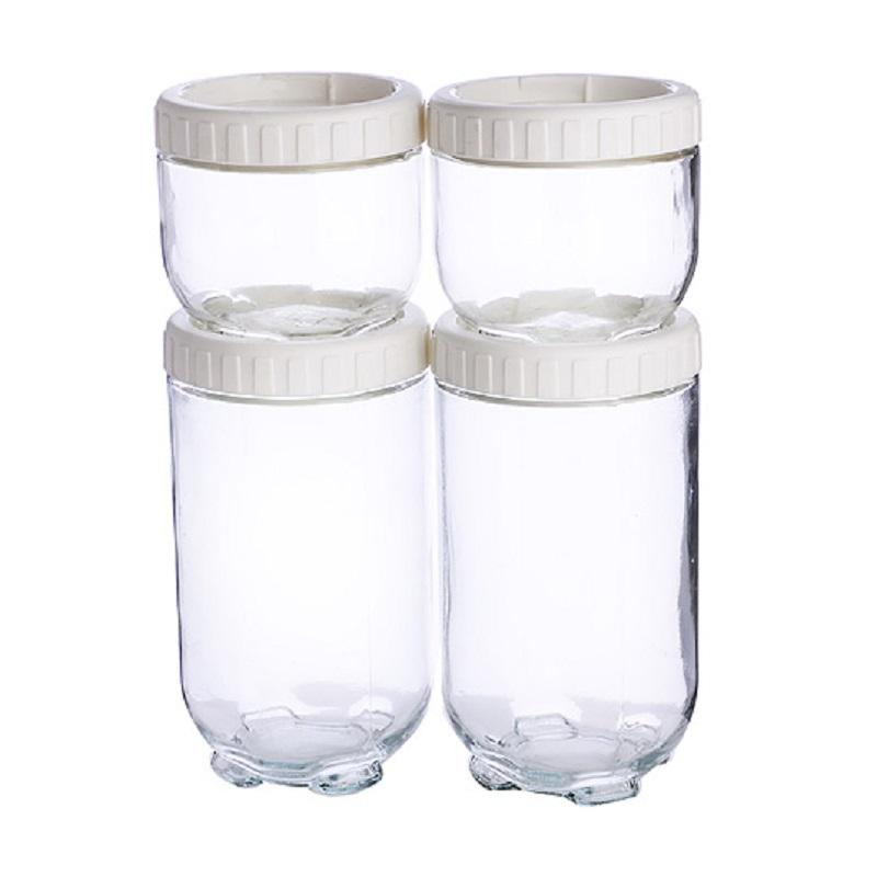 Набор из 4-х банок для сыпучих продуктов Mayer&Boch Lovwish выполнен из высококачественного прозрачного стекла. Банка предназначена для хранения различных сыпучих продуктов. Пластиковая крышка плотно закрывается и препятствует проникновению влаги и посторонних запахов. Стильная банка украсит любую кухню. Изделие не впитывает запахи и легко моется. Объем: 450 мл, 450 мл, 900 мл, 900 мл. Диаметр банок 9 см, высота 9 см, 9 см, 17.2см, 17.2см.