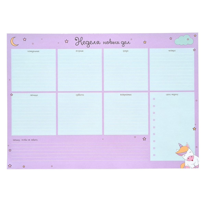 Залог успеха - грамотное планирование и четкое расписание. С этим тебе точно поможет наш отрывной планнер "Список дел" на неделю Be Smart "Magic" А4 формата (297х210 мм), который будет удобно держать перед собой на рабочем столе. Удобное клеевое скрепление позволяет легко удалять ненужные листы из планнера. Сам блок на 28 листов - из плотной белой бумаги плотностью 80 г/кв.м с цветной печатью с одной стороны и прямыми уголками. Всю неделю ты можешь записывать свои задачи, проставлять отметки об их выполнении и добавлять заметки. Никогда планирование еще не было таким приятным процессом!