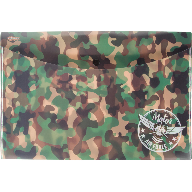 Папка-конверт на кнопке А4 №1 School Military (зелен) 2шт/уп