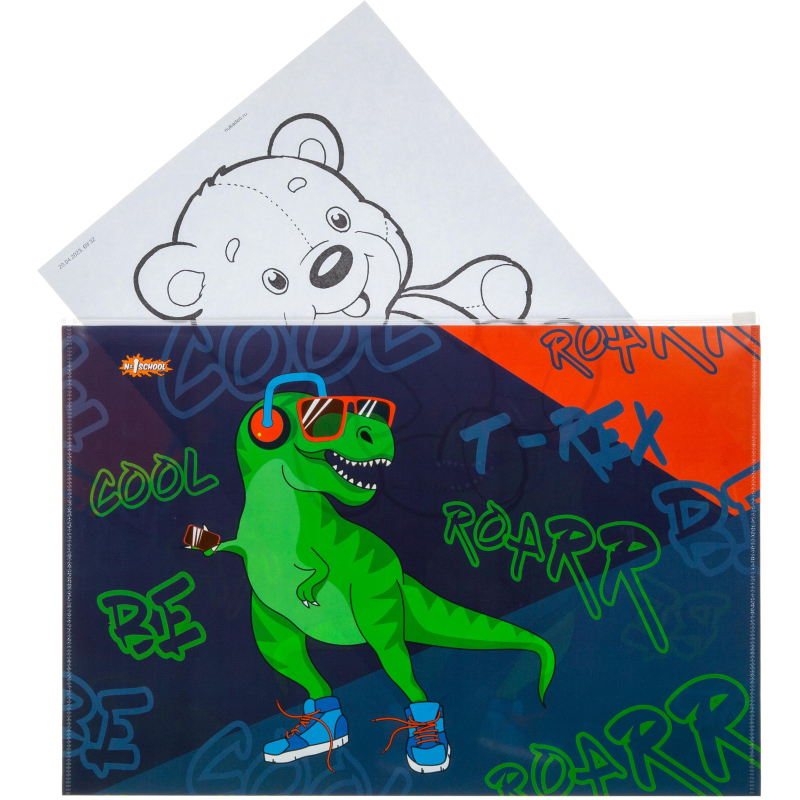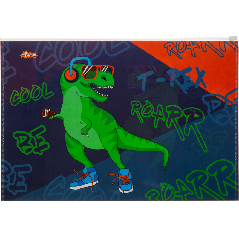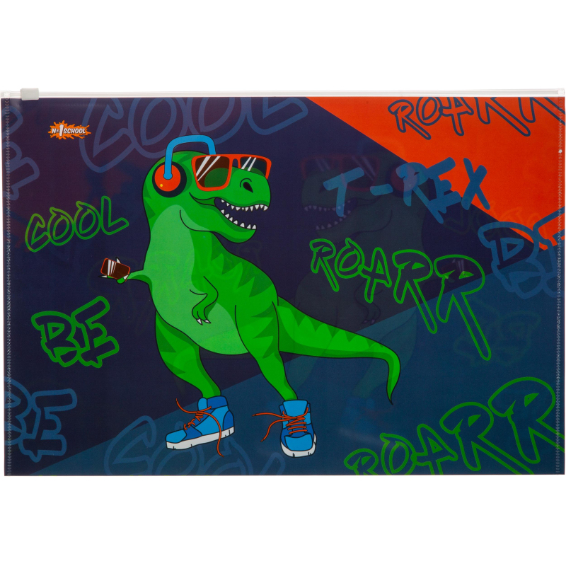 Папка-конверт на молнии zip А4+ №1 School Динозавр